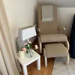 Denne 50 m^2 store ferielejlighed har udsigt over haven og værelser med en balkon, en sofa, kaffe- og tefaciliteter. Separat toilet, et badekar og en bruser opbevares på badeværelset.
